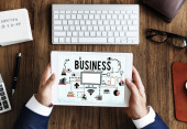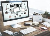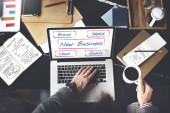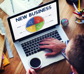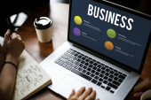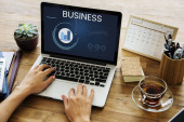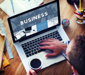 biznesmen korzystający z laptopa