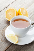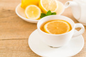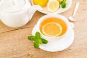 Filiżanka herbaty z imbirem na jasnym tle drewniane