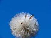 mniszek lekarski na niebieskim tle