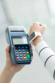 Zdjęcie "Dama, płacąc rachunek przez inteligentny zegarek " może być wykorzystywane do celów osobistych i komercyjnych zgodnie z warunkami zakupionej licencji Royalty-free. Obraz jest dostępny do pobrania w jakości wysokiej rozdzielczości do 5760x3840.