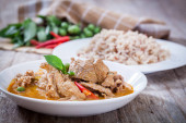 Zdjęcie "Zielone curry z kurczaka, jasny, pikantne tajskie dania smaczne azjatyckie " może być wykorzystywane do celów osobistych i komercyjnych zgodnie z warunkami zakupionej licencji Royalty-free. Obraz jest dostępny do pobrania w jakości wysokiej rozdzielczości do 5760x3840.