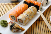 Zdjęcie "sushi z ryby z bliska" może być wykorzystywane do celów osobistych i komercyjnych zgodnie z warunkami zakupionej licencji Royalty-free. Obraz jest dostępny do pobrania w jakości wysokiej rozdzielczości do 5760x3840.