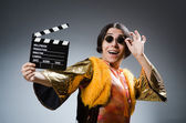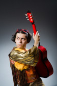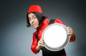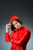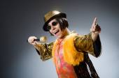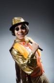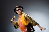 Młody człowiek śpiewu w klubie karaoke