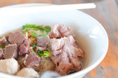 tradycyjny tajski przysmak wykonane z dużych krewetek, tajski makaron i przygotowane z wybranych przypraw. przyozdobionym z drobno posiekaną zieloną cebulką