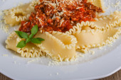 Zdjęcie "Makaron z sosem ragu, Kuchnia Włoska" może być wykorzystywane do celów osobistych i komercyjnych zgodnie z warunkami zakupionej licencji Royalty-free. Obraz jest dostępny do pobrania w jakości wysokiej rozdzielczości do 5760x3840.