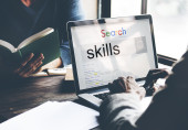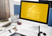 Człowiek za pomocą laptopa w miejscu pracy, procesu pracy