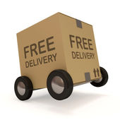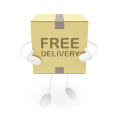 Dostawy Van i ręka samochód z polem na białym tle (darmowe dostawy koncepcja)