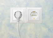 Bar biały moc i dwie wtyczki zasilania z kablami zasilania