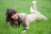 uśmiechnięte dziewczyny na zielonej trawie