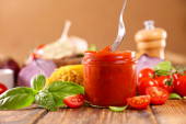 Zdjęcie "Ketchup pikantny pomidorowy z papryki chili i czosnek" może być wykorzystywane do celów osobistych i komercyjnych zgodnie z warunkami zakupionej licencji Royalty-free. Obraz jest dostępny do pobrania w jakości wysokiej rozdzielczości do 5760x3840.