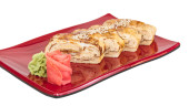 omlet maki sushi - rolki wykonane z wędzonego węgorza wewnątrz. zwieńczona