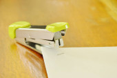 Zszywacze i zszywki z papieru na stole, selektywne focus