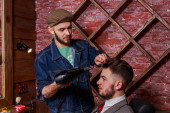 Fryzura mężczyzn fryzjera. Salon fryzjerski dla mężczyzn; fryzjerzy.
