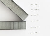 Ręka trzyma niebieski zszywacz zszywanie dokumentów, widok zbliżenie, selecti