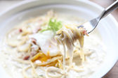 spaghetti carbonara z szynką i serem