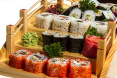 Zdjęcie "zestaw sushi i rolki" może być wykorzystywane do celów osobistych i komercyjnych zgodnie z warunkami zakupionej licencji Royalty-free. Obraz jest dostępny do pobrania w jakości wysokiej rozdzielczości do 5760x3840.