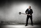 biznesmen z młotem w ręce