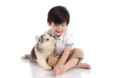 Zdjęcie "Mały chłopiec i husky szczeniaka w studio" może być wykorzystywane do celów osobistych i komercyjnych zgodnie z warunkami zakupionej licencji Royalty-free. Obraz jest dostępny do pobrania w jakości wysokiej rozdzielczości do 5760x3840.
