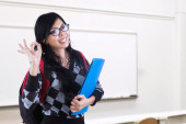 Zdjęcie "Ładny student z Ok znak w klasie" może być wykorzystywane do celów osobistych i komercyjnych zgodnie z warunkami zakupionej licencji Royalty-free. Obraz jest dostępny do pobrania w jakości wysokiej rozdzielczości do 5760x3840.