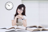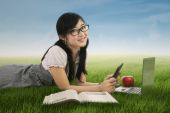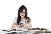 Uczeń za pomocą telefonów komórkowych podczas studiów