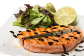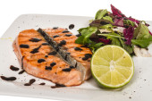 pikantne ryb część: Pieczony filet łososia norweskiego, przyozdobionym