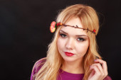 Piękna rudowłosa dziewczyna z wieniec w jej włosy. Akcesoria do włosów - wieńce. Ozdoby do włosów. Przepiękny Ruda dziewczyna.