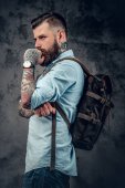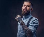 Brodaty mężczyzna w białej koszuli