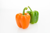 Żółta, zielona i czerwona papryka, izolowana na białym tle.