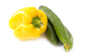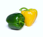 Świeży żółty i zielony dzwon papryki, izolowane na białym tle.