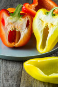 Świeża czerwona i Żółta papryka, na powierzchni drewnianej