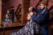 Zdjęcie "Fryzjer Nożyce do klienta. Fryzjer pracuje na sposób klient." może być wykorzystywane do celów osobistych i komercyjnych zgodnie z warunkami zakupionej licencji Royalty-free. Obraz jest dostępny do pobrania w jakości wysokiej rozdzielczości do 5760x3840.