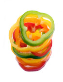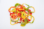 Świeży papryka poklony w pierścienie, izolowane na białym tle.