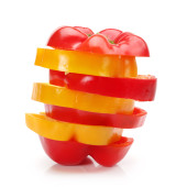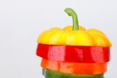 Świeży papryka w plasterkach kolorowe pierścienie, izolowane na białym tle.