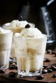 Lody z sosem orzechowym, orzechy laskowe i migdały w okularach