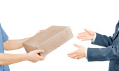 W ręce Kelner gospodarstwa cloche nad pusta taca na isol