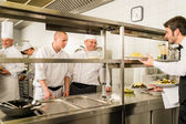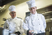 Szefowie kuchni gawędząc podczas przygotowywania żywności