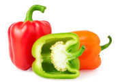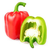 czerwony zielony pomarańczowy papryka z pół na białym tle