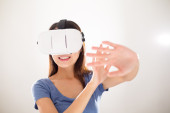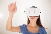 kobieta za pomocą urządzenia rzeczywistość wizualna