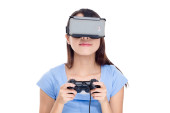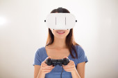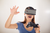Kobieta z wirtualnej rzeczywistości urządzenia