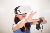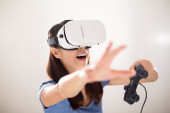 Zdjęcie "Kobieta z wirtualnej rzeczywistości urządzenia" może być wykorzystywane do celów osobistych i komercyjnych zgodnie z warunkami zakupionej licencji Royalty-free. Obraz jest dostępny do pobrania w jakości wysokiej rozdzielczości do 5760x3840.