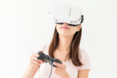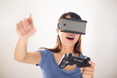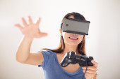 Kobieta z wirtualnej rzeczywistości urządzenia