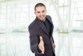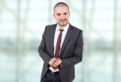 młody biznesmen będzie kciuk w górę, w biurze