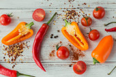 Pomarańczowy papryka (pieprz) na białym tle drewniane