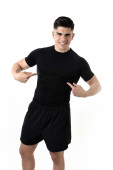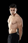 young attractive sport man with big and strong athletic body posing with folded arms