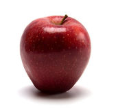 dojrzałe czerwone jabłko z zielony liść na białym tle