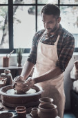 Barista w fartuch w kawiarni