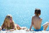 Cute dziewczynka na tropikalnej plaży