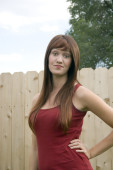 brunetka teen dziewczyna w szorty i koszulkę czerwony