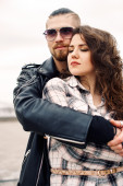Młody i szczęśliwa para zabawy w mieście