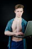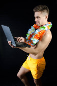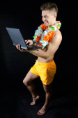 Zewnętrznych. Młody człowiek pracy przy komputerze.